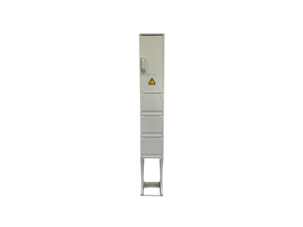 Skříně jsou vyrobeny v celoplastovém provedení z termosetu z SMC-prepreg materiálu, který je odolný proti povětrnostním vlivům, vodě a UV zářením. Prodloužení životnosti je navíc zajištěno UV ochranným nástřikem v barevném odstínu RAL7035. Materiál nepodléhá korozi, zachovává tvar, je nesnadno hořlavý kategorie B a samozhášivý. Vnitřní výzbroj jednosazbová slouží pro měření spotřeby el. energie. Obsahuje nastavitelný držák elektroměru, svorkovnice PEN, vypínač 63A 3P pro vývod max.16mm2, plombovatelný kryt a místo pro hlavní jistič. Silové vodiče jsou jednotné o průřezu 6mm2 pro osazení hlavního třífázového jističe do 40A.