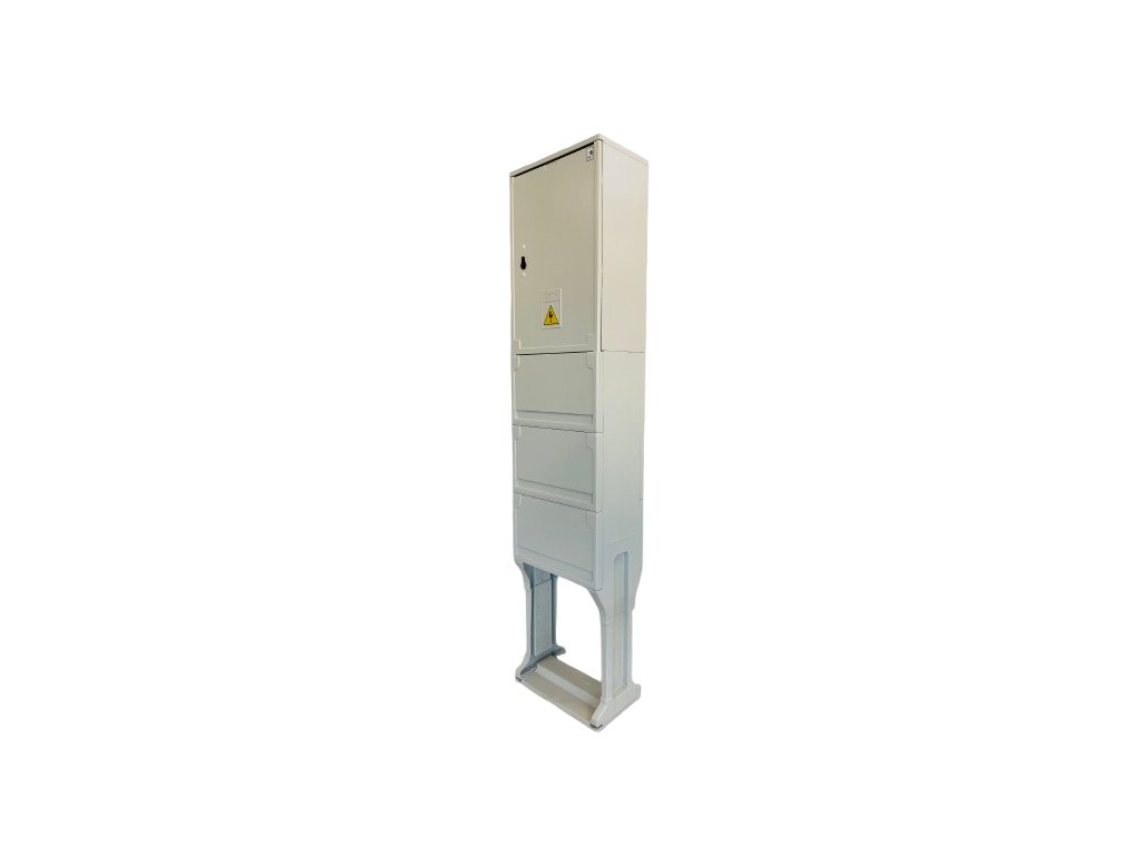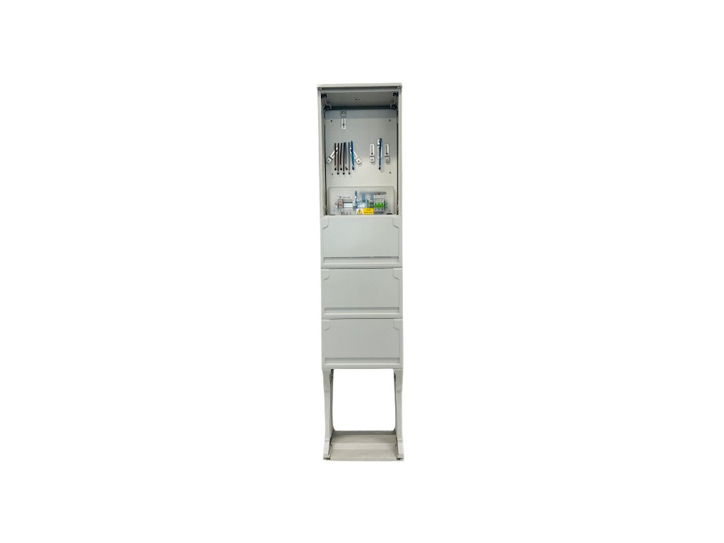 Skříně jsou vyrobeny v celoplastovém provedení z termosetu z SMC-prepreg materiálu, který je odolný proti povětrnostním vlivům, vodě a UV zářením. Prodloužení životnosti je navíc zajištěno UV ochranným nástřikem v barevném odstínu RAL7035. Materiál nepodléhá korozi, zachovává tvar, je nesnadno hořlavý kategorie B a samozhášivý. Vnitřní výzbroj jednosazbová/dvousazbová pro FVE slouží pro měření spotřeby el. energie. Obsahuje nastavitelný držák elektroměru a HDO, jistič přijímače HDO-2B1, svorkovnice PEN, vypínač 63A 3P pro vývod max.16mm2, plombovatelný kryt a místo pro hlavní jistič a ovládací relé OR. Silové vodiče jsou jednotné o průřezu 10mm2 pro osazení hlavního třífázového jističe do 63A. Hlavní jistič není součástí. Závěr rozváděčů je 1-bodový na trnový klíč 6 x 6 mm dle ČSN 359756.
